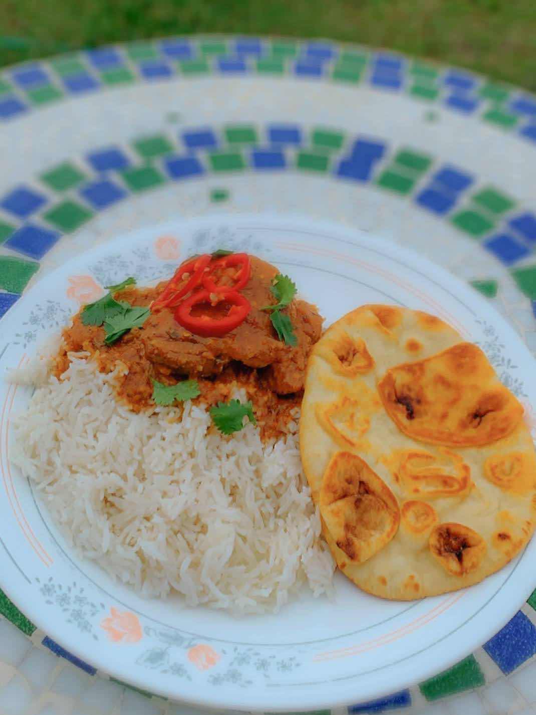 I didn’t quite follow a true recipe, just the steps in a bottle of sauce for the recipe. The sauce can be purchase at Lidl stores. I also purchased the Naan from Lidl. I tweaked a few ingredients and steps a bit. It turned out super tasty and quite delicious.